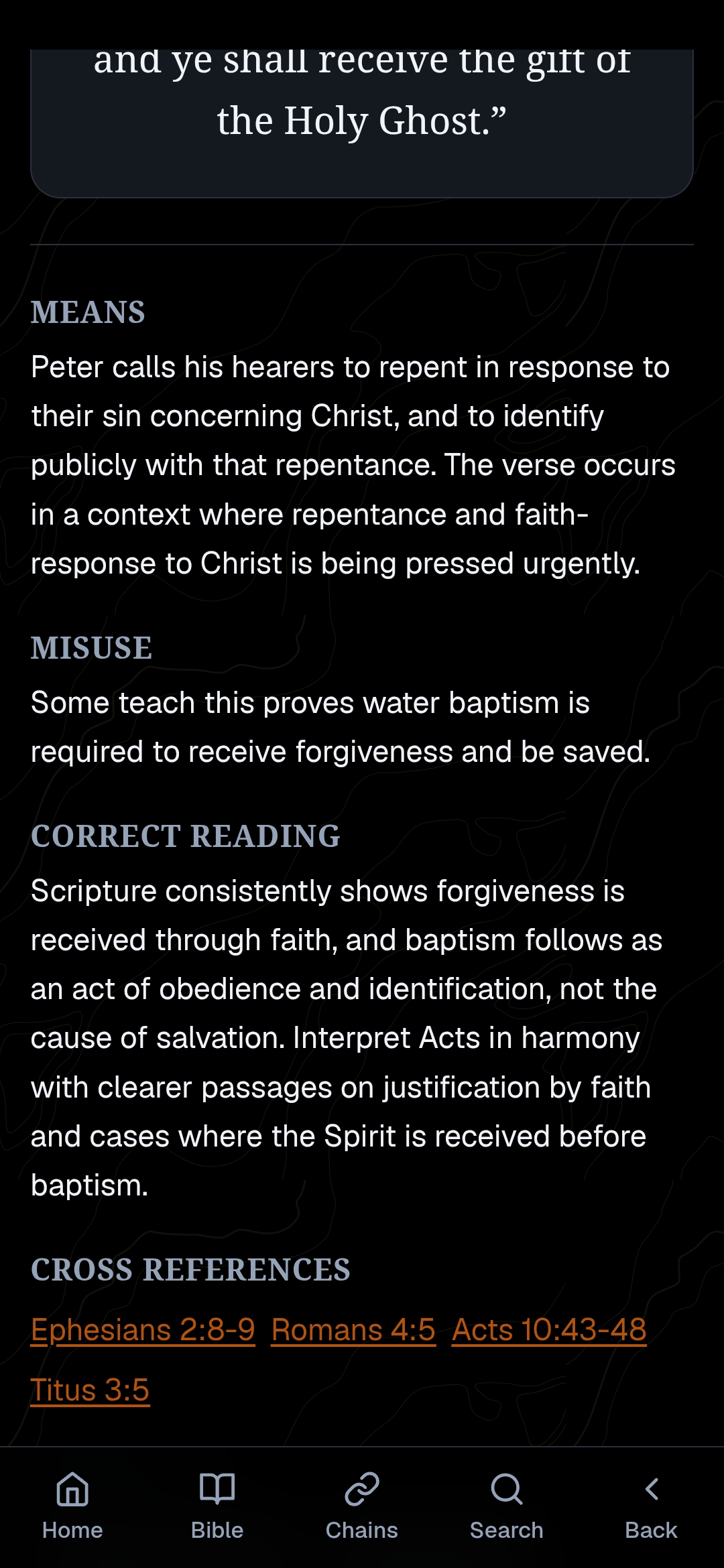 Detailed explanations of common distortions. Provides context, background, and the Correct Reading to lock in the Truth of the text. YES, You can add your own too!